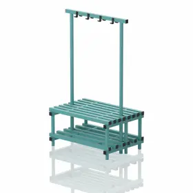 Plastična klupa sa donjom policom i vešalicom je multifunkcionalni higijenski proizvod koji je idealan za upotrebu u ekstremnim uslovima na otvorenom i zatvorenim prostoru. Klupe su univerzalne i mogu se koristiti za javne bazene, svlačionice, sportske klubove, škole, kuhinje, igrališta i ostale javne objekte.